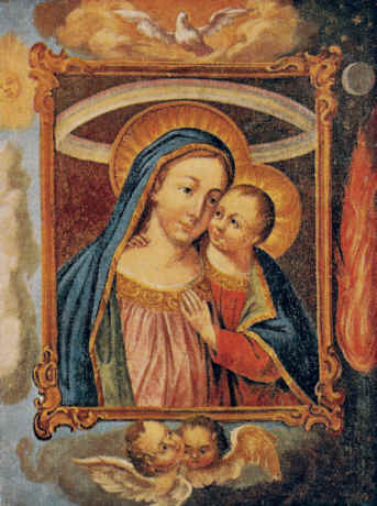 zur Gottesmutter erkannt und in vielen Gebeten und Liedern seliggepriesen.