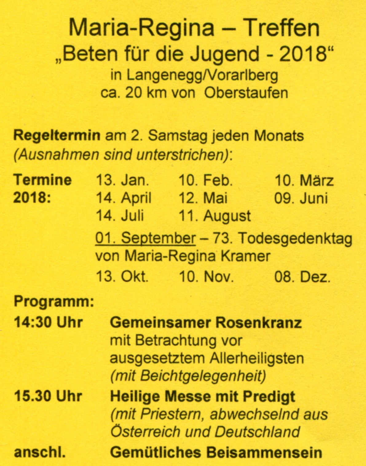 die hl. Messe des Treffens eingeschlossen. Die Novene beginnt jeweils am