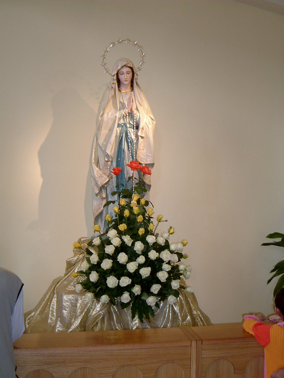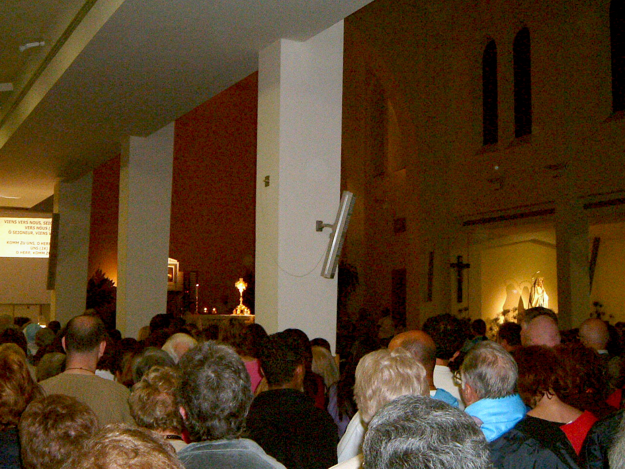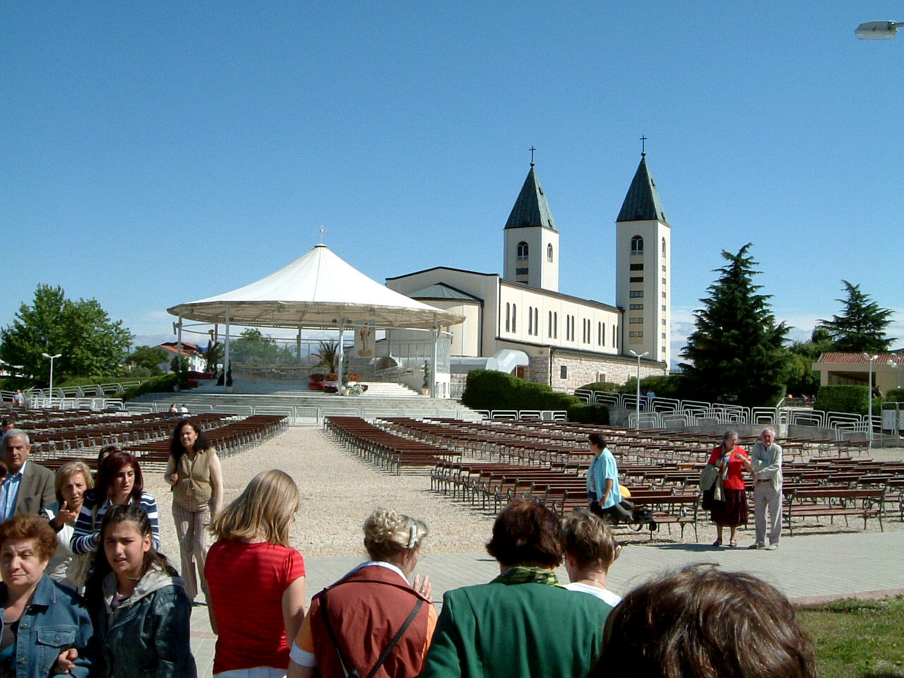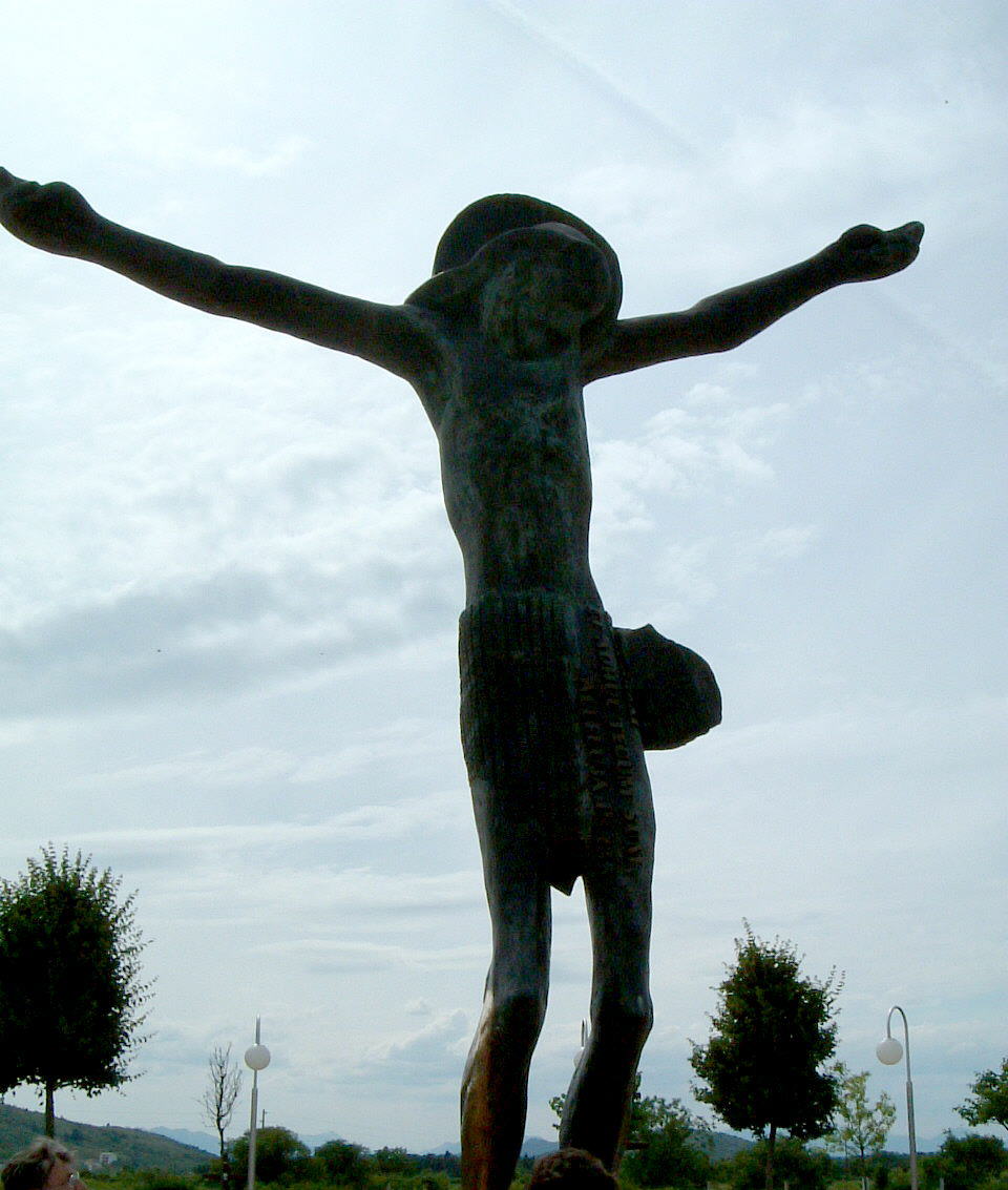Die Kirche von außen / vorne mit Vorplatz Das Innere der Kirche: sie ist vormitags stets überfüllt! Die Madonna am Seitenflügel der Kirche überfüllte Kirche bei nächtlicher Anbetung bis 23:30h! an bes. Tagen sind auch die äußeren Plätze voll belegt! Weißes Kreuz auf dem Kreuzberg (Kreuzweg!) Blaues Kreuz auf dem Erscheinungshügel Medjugorje vom Kreuzberg aus gesehen Vortrag in der "Oase des Friedens" "Friede! Friede! Friede!" sagte die "Königin des Friedens" 1. Statue der Madonna in Tihalina nach Angaben der Seher Jesustatue in Tihalina Jesus ohne Kreuz: Jesus ist auferstanden! Halleluja! hier am Kreuzberg erlag P. Slavko einem Herzinfarkt Grab von Pater Slavko Barbaric hinter der Kirche täglich neu geschmückte Madonna in der Kirche neue Brücke in der ca. 50 km entfernten Stadt Mostar heilige Messe in Tihalina |