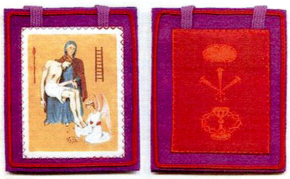 eingeprägt. Das ist also die Seite des Skapuliers, die sich auf dem