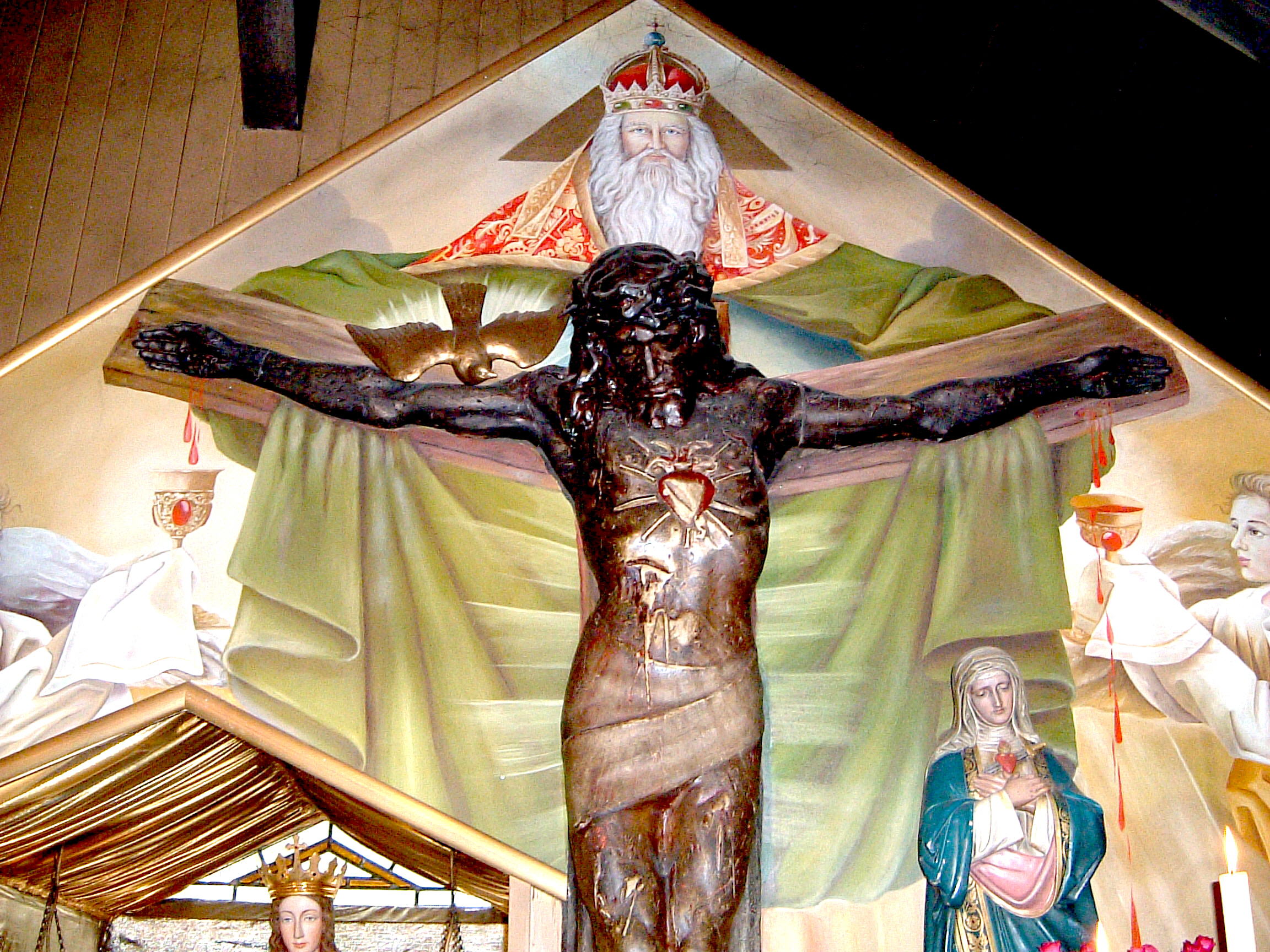 wird rechts neben ihr die Heiligste Dreifaltigkeit sichtbar. Gott Vater