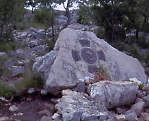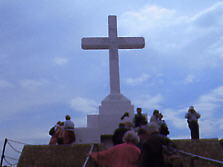 einem großen weißen Kreuz, einem sehr steinigen Kreuzweg, da