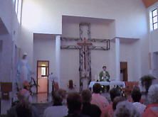 die Menschen kommen scharenweise zum abendlichen Rosenkranz, zur Kreuzverehrung,