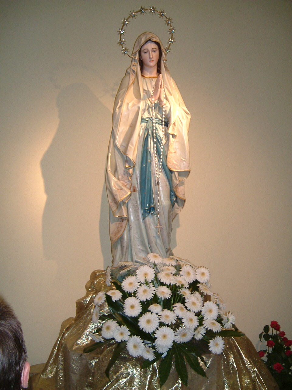 Die Kirche von außen / vorne mit Vorplatz Das Innere der Kirche: sie ist vormitags stets überfüllt! Die Madonna am Seitenflügel der Kirche überfüllte Kirche bei nächtlicher Anbetung bis 23:30h! an bes. Tagen sind auch die äußeren Plätze voll belegt! Weißes Kreuz auf dem Kreuzberg (Kreuzweg!) Blaues Kreuz auf dem Erscheinungshügel Medjugorje vom Kreuzberg aus gesehen Vortrag in der "Oase des Friedens" "Friede! Friede! Friede!" sagte die "Königin des Friedens" 1. Statue der Madonna in Tihalina nach Angaben der Seher Jesustatue in Tihalina Jesus ohne Kreuz: Jesus ist auferstanden! Halleluja! hier am Kreuzberg erlag P. Slavko einem Herzinfarkt Grab von Pater Slavko Barbaric hinter der Kirche täglich neu geschmückte Madonna in der Kirche neue Brücke in der ca. 50 km entfernten Stadt Mostar heilige Messe in Tihalina |