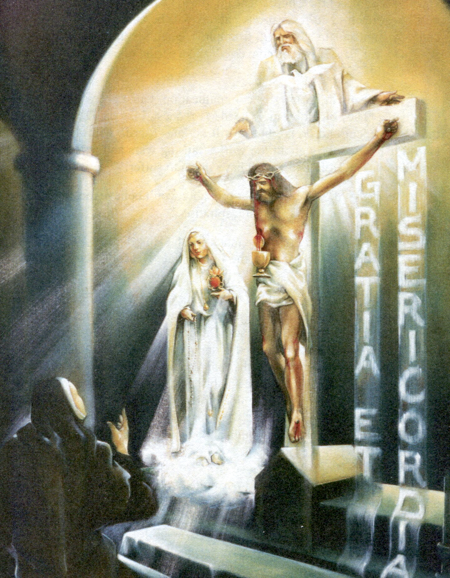 Anrufe der Jungfrau Maria, wobei ihr Bluttränen aus den Augen traten.
